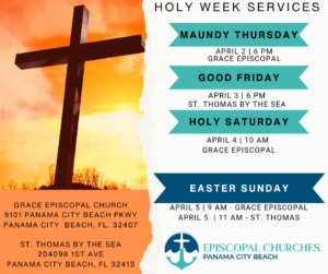 Welcome to The Episcopal Churches of Panama City Beach. If you live in the area, and are looking for a church home, we invite you to journey with us as faithful followers of Jesus Christ. If you are a seasonal guest, or are on vacation, we’re delighted you’ve found your way to us. We look forward to seeing you at Grace Episcopal or St. Thomas by the Sea as we continue our journey of faith together.